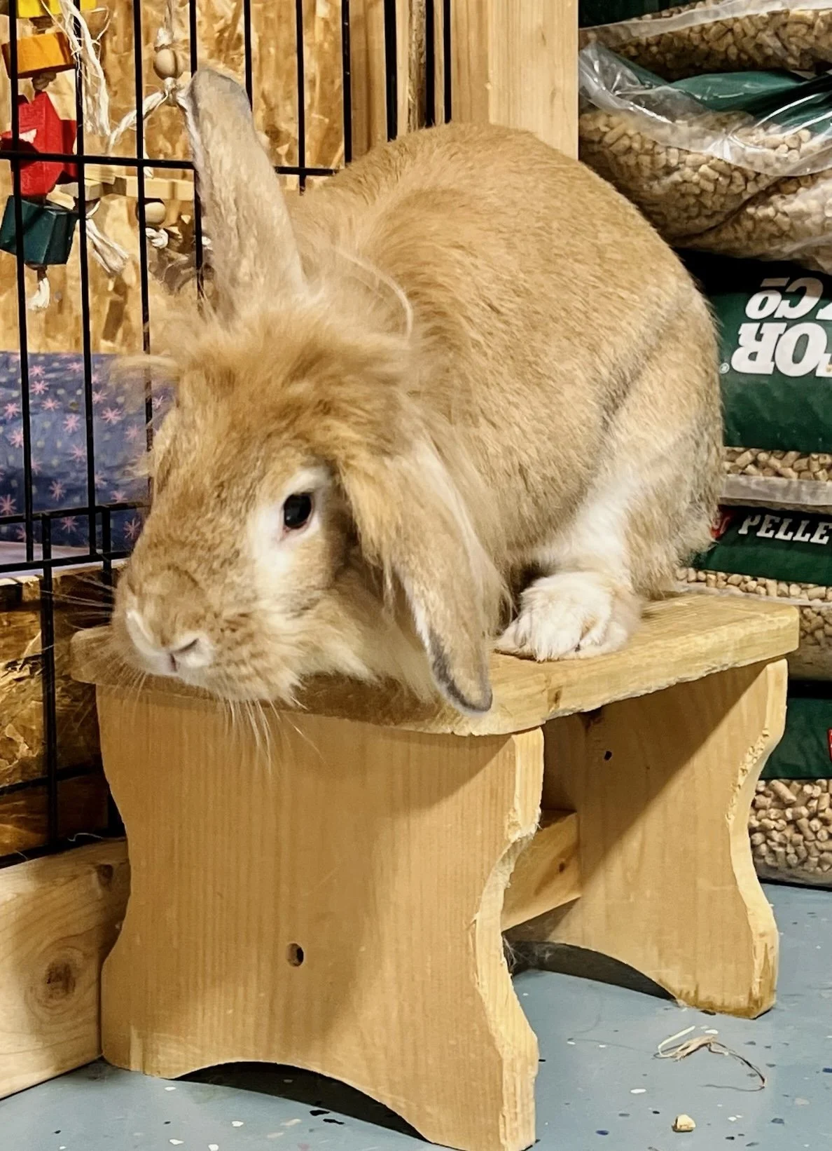 Oliver was found roaming a front yard on a cold, wet day in Nov. 2024. We were contacted, and because he so resembles our original mascot bunny Oscar, we couldn't say no. Plus his friendly personality was impossible to resist! Oliver has quickly become a favorite in the Bunny Barn and has also fallen in love with our girl Honeybun who had been single for a year. They are super cute together and we adore them! -